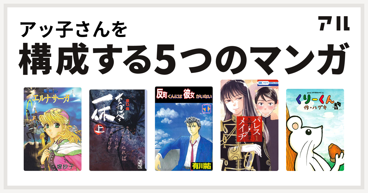 アッ子さんを構成するマンガは聖戦記エルナサーガ あっかんべェ一休 反町くんには彼女がいない パレス メイヂ くりーくん 私を構成する5つのマンガ アル